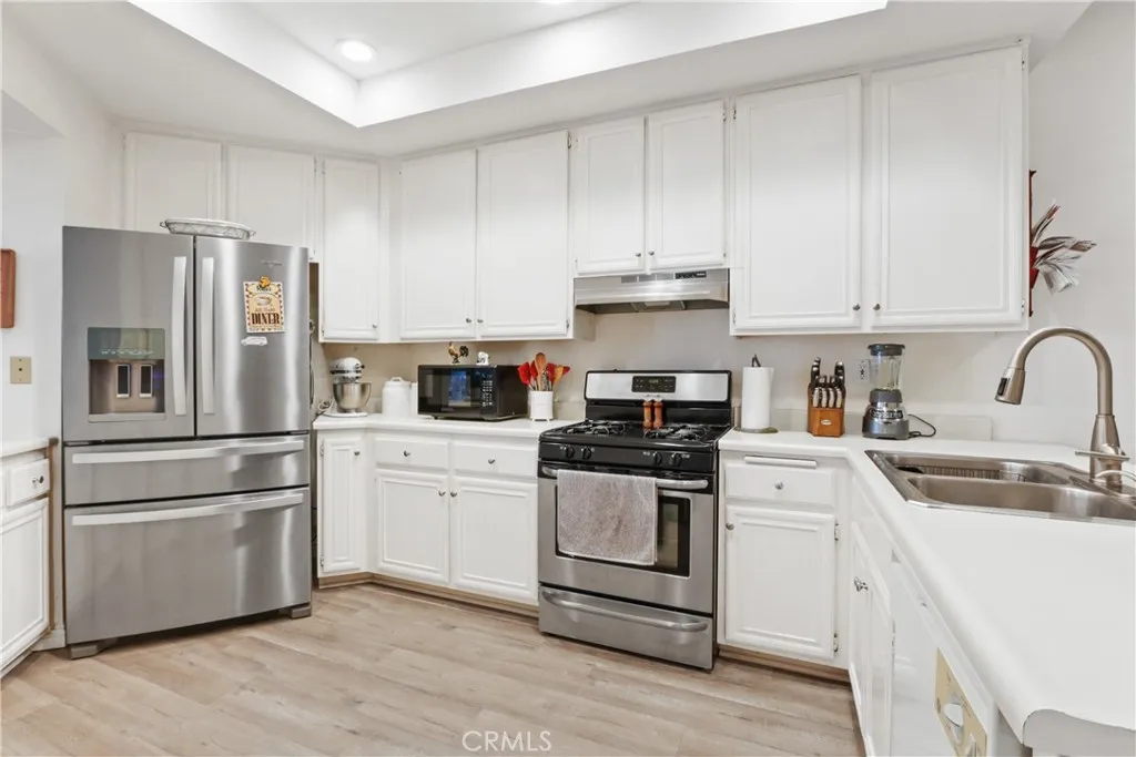 Welcome to this 2+ bedroom, 2 bath home bathed in natural light, which offers a bonus room, and a balcony with treetop views. Almost 1500 ft.2 of spacious living welcomes you here. This home offers a cozy living room fireplace, a separate dining space, and open kitchen with lots of counter and cabinet space. The convenience and ease of having a private laundry right inside your unit. The primary suite has a walk-in closet and primary bath with a separate tub and shower stall, double sink, and spacious vanity. This gated community, found at the end of a cul-de-sac, not only offers elevator access, a pool, bbq area, rec room and gym. Two side-by-side parking spaces, and so much more. All perfectly located near shopping, restaurants, freeway access, and so much more. Don’t miss your opportunity to call this your new home!