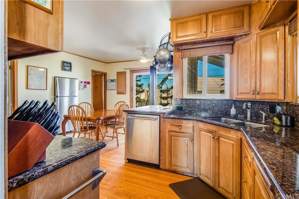 Beautiful setting in the middle of a quiet block on a street with trees in tranquil Harbor City. This family home features 2 large bedrooms, an updated kitchen a bath with stone counters and a professional series Wolf stove. Inside you will also find updated windows and doors, a wood burning stove and epic redwood construction. There is a wonderful private grass covered yard in-between the house and garage. Also you will find that there are decades old fruit trees including Pear, Fuji Apples, Ruby Grapefruit, Guava, Mulberry, orange and avocado. This is a real gardener’s dream yard. Don’t miss the huge covered patio area large enough to park an RV, two lockable storage units and a large two car garage with tons of storage, covered parking for additional cars and trucks and easy alley access. Don’t miss out on this amazing property.