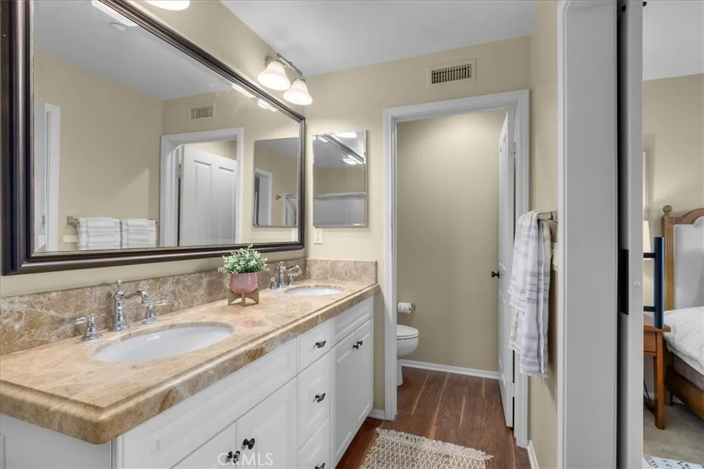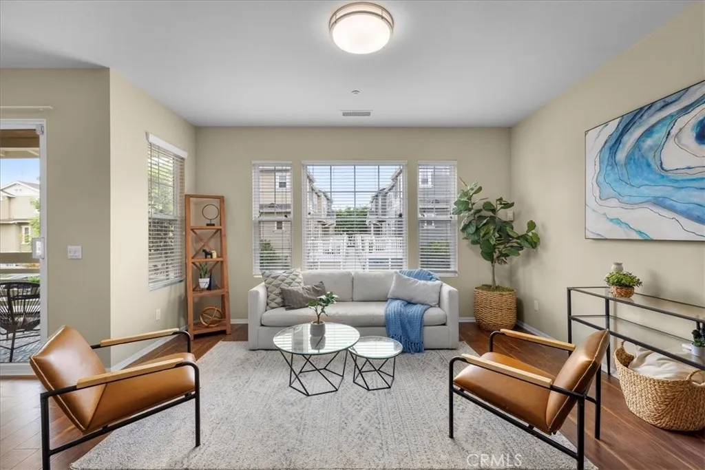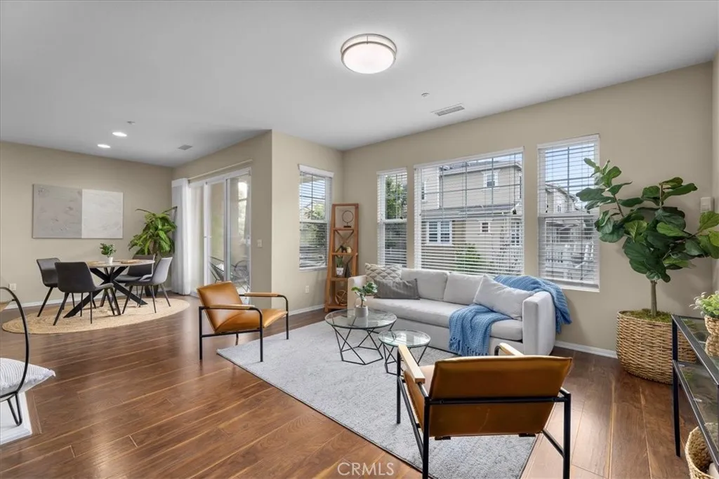 Welcome to Village on Oak, a highly sought-after gated community walking distance to Wilson Park and renowned Torrance Farmer’s Market. This 2 bed 2.5 bathroom “Acacia” Floor-plan unit is inviting upon a spacious entry level foyer. Step inside from the front door or through the direct access 2 car garage. Head up the stairs to the main level, you’ll be greeted by the welcoming living room, boasting 9-foot tall ceilings, a gas burning fireplace, and an abundance of natural light from the windows. There is a large sliding glass door next to the dining room that opens to the private balcony, perfect for entertaining and BBQs.