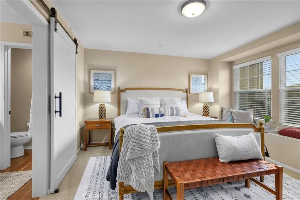 Upstairs to the top level there is a large guest bedroom, full size guest bathroom, and in-unit laundry closet with LG washer and dryer. Down the hall awaits the primary suite with an inviting bay window, walk-in closet with custom built in shelving, and an ensuite primary bathroom with barn door, dual sinks, shower tub, and a private toilet area. Other special features in this property include central heat and air conditioning, walnut laminate floors, newer carpet (installed 3 years ago), recessed lighting, pre-wired with multiple enhanced cat-5 data wire, a new clean out, and a brand new 2024 garage door opener. The Village on Oak community features luxury resort style living with a pool, spa, BBQ area with seating, community fireplace, and playground. The HOA is cared for with recent upgrades including 2019 PEX plumbing and 2021 exterior painting. Conveniently located to the 405 freeway, restaurants, Del Amo shopping center, beaches, and more!