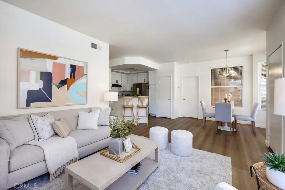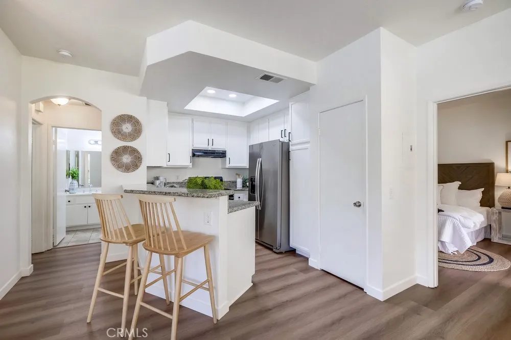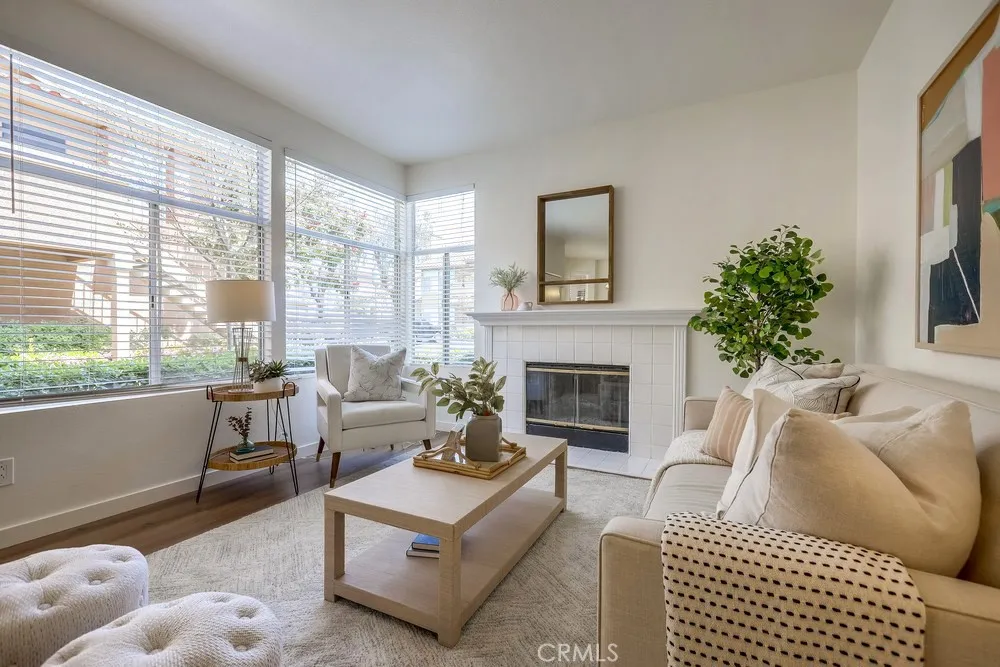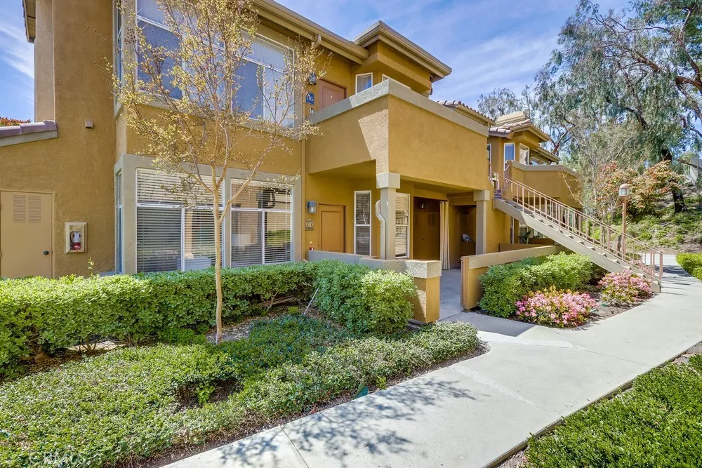 Beautiful, ground floor home is located in the amenity-rich community of Tuscany at Foothill Ranch. Ideally located, corner unit has a spacious, open floorplan and large windows to allow in natural light all day long. This turnkey home features new floors and baseboards, recessed lighting in the kitchen, new toilets and bath fixtures, and fresh paint. Both bedrooms are generously-sized, and one is en-suite with direct access to the wraparound patio. Laundry is located within a closet on the patio, conveniently close to the primary bedroom. One-car garage is nearby and additional parking is available by permit. This gated community is meticulously maintained and has two pools, gym, spa, putting green, and tennis court. Foothill Ranch offers all the peaceful tranquility of being surrounded by nature and the convenience of easy access to the freeway, retail and restaurants. Come see why people who visit Tuscany never want to leave!