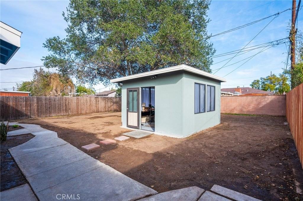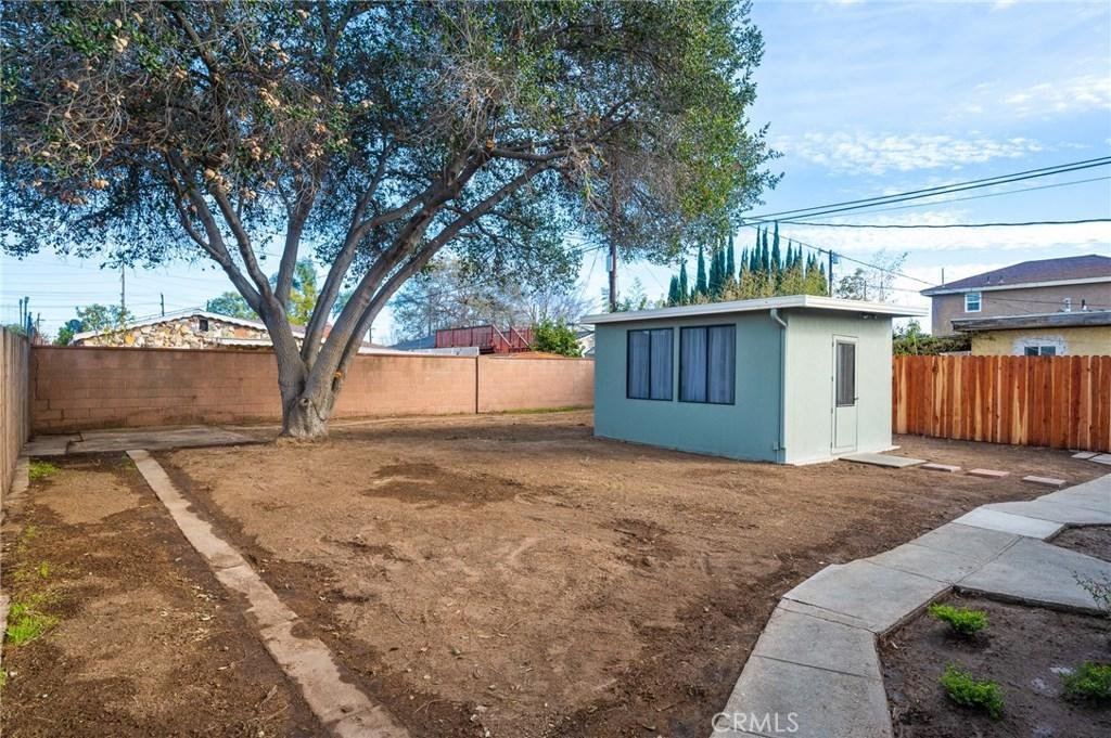 Escape the busy city life by retreating to this 3 bedroom 1 bath totally remodeled turn-key home on a 5,597 square foot lot with an attached garage! The home sits on a conveniently located street close to the freeways, shopping and dining. The property boasts a sizable front yard and shade-providing trees perfect for taking in sunny days. The entrance opens to a spacious living room with hardwood laminate floors giving a modern look to this open floor plan. Not to mention large windows that allow light to pour in. Across the entrance and to the right of the living room is an incredibly remodeled kitchen that INCLUDES appliances, quartz countertops and a beautiful backsplash. The living room flows to a hallway leading to three spacious, bright bedrooms and a newly remodeled bathroom complete with quartz countertops and tile. Step outside to see that the home features a very large, private yard with a fence in the back where you can host BBQ’s and get-togethers w/ friends and family, and watch your loved ones play freely. Enjoy the extra living space with your own bonus structure to use as a home gym or office! Cookouts and entertaining will be a cinch. Come see for yourself before it flies off the market!
