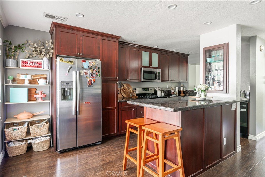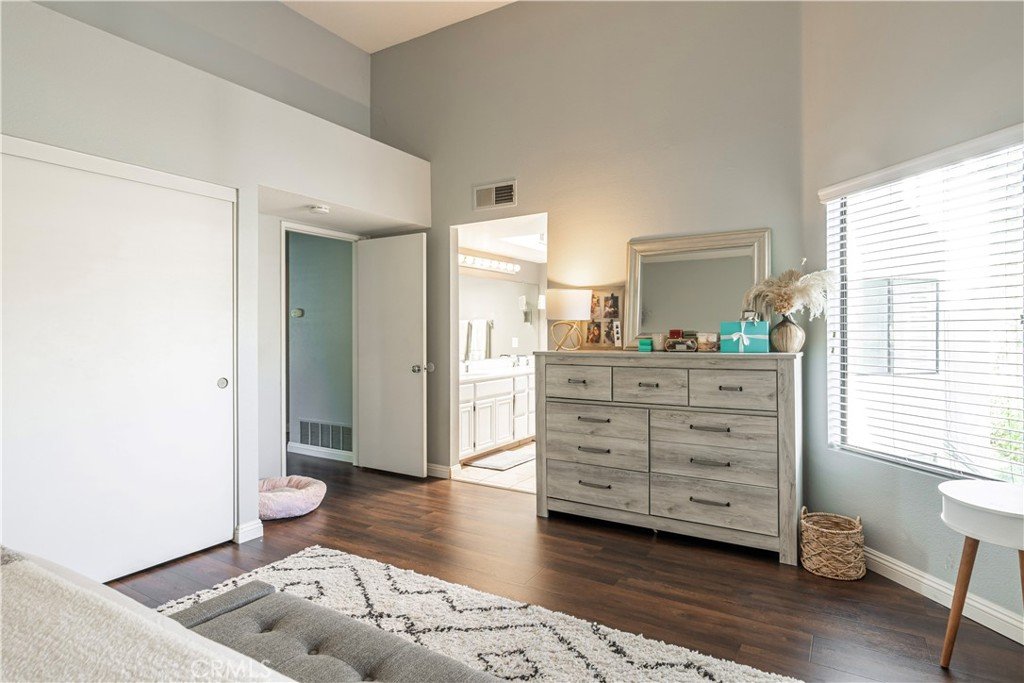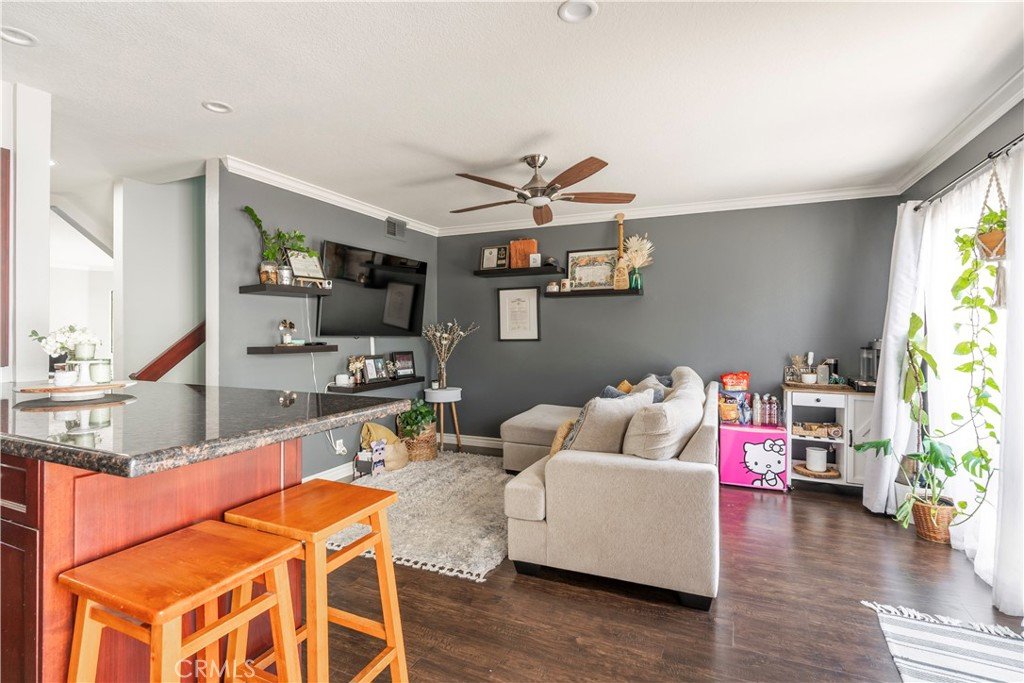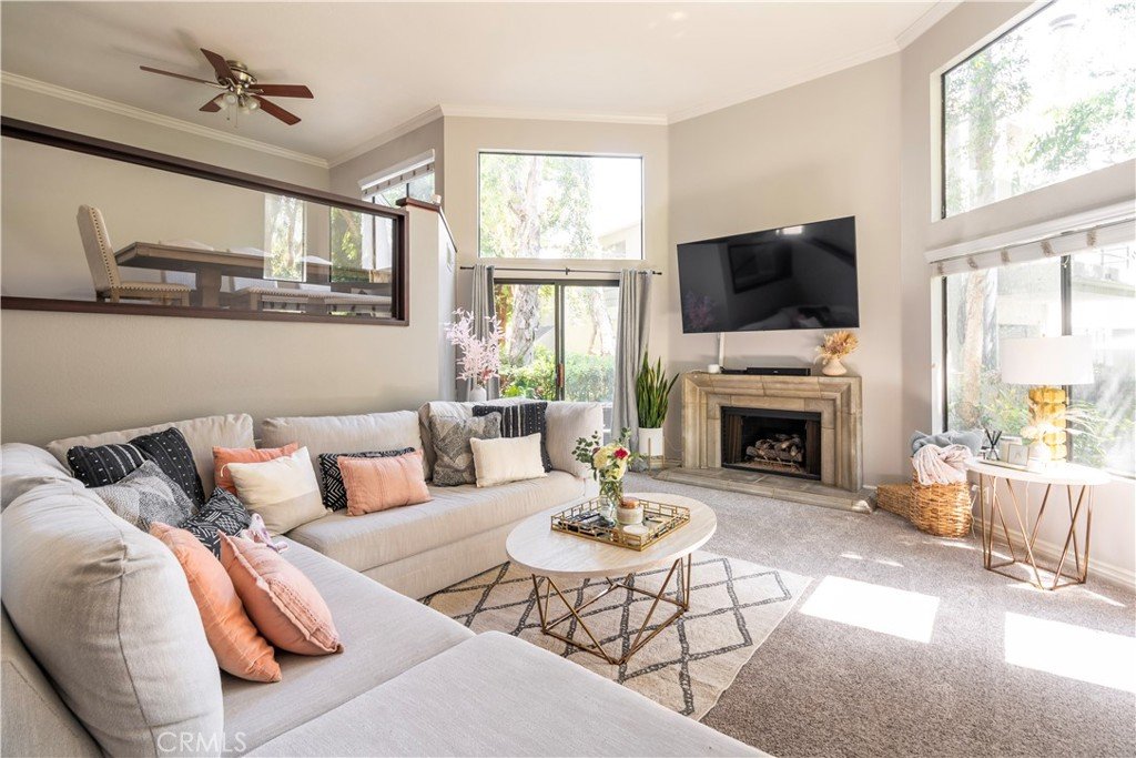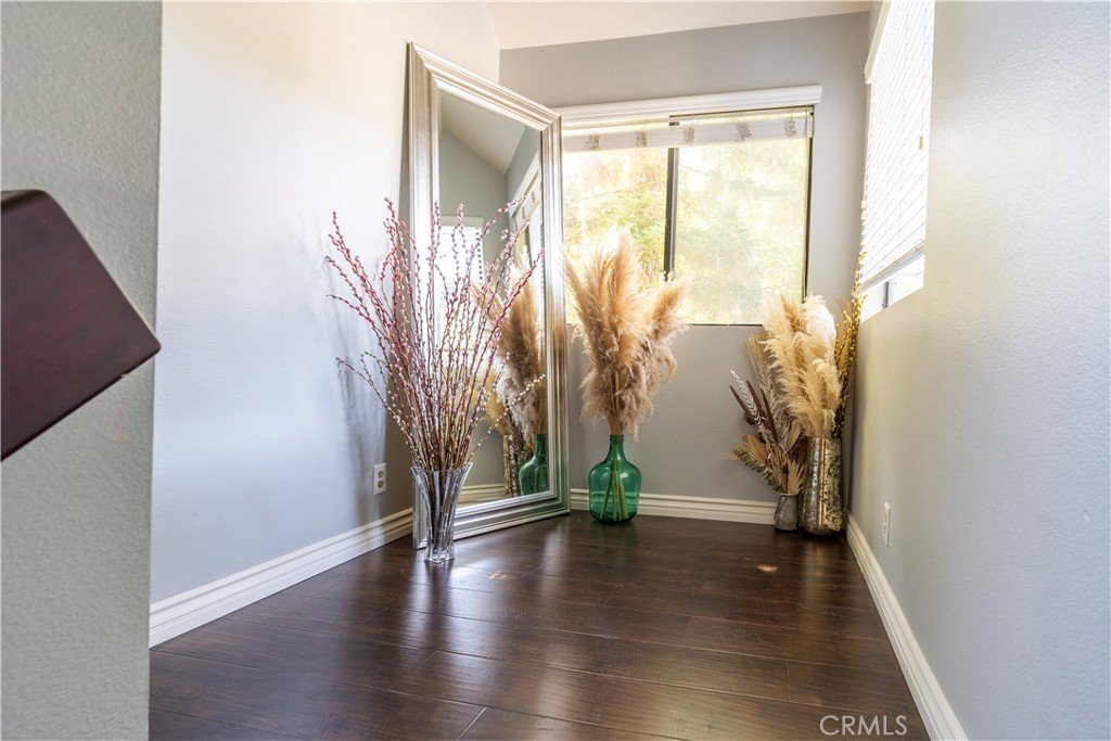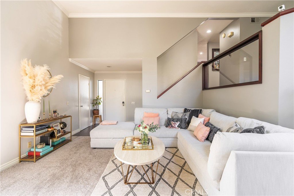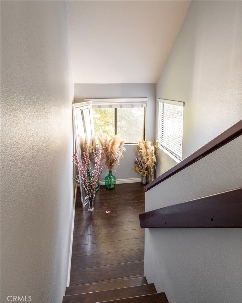 Resort style living at the highly sought-after Stream House community in Orange Hills. This 3 bedroom 2 bathroom townhouse includes two outdoor spaces and three additional living spaces to be used a dinning room, den or office spaces. Boasting 1,732 sqft this interior end-unit home is the largest model in the community. Upon walking through the front door you are greeted with an abundance of natural light flooding the unit through the floor to ceiling windows, skylights, and tall ceilings. Overlooking the living room is a multi-use loft space adjacent to the kitchen. The spacious upgraded kitchen features granite counter tops, a breakfast bar and island, plenty of cabinets for storage, gas stovetop and range, and stainless steel appliances. The kitchen opens to an additional den area and direct access to a private balcony, perfect for bbqs. Walking up to the top level is a large landing space which can be used as a seating area, office, or more. At the top level of the home are all three bedrooms, the large primary suite has vaulted ceilings and plenty of natural light. The ensuite primary bathroom features dual vanity, skylights, and Jacuzzi style tub and shower combo. The second and third bedroom are spacious and flooded with natural light, both sharing a full size bathroom down the hallway. Additional features of this home include hardwood floor throughout, central air conditioning and heat, ample amount of storage including a separate area in the bottom level bathroom, attached two-car garage with charging port for an electric vehicle, separate laundry room with washer and dryer, bottom level private patio area. The community provides access to two pools, including a fabulous Resort style pool and spa with community barbecues and clubhouse. Walk/bike trails with stunning views from the top of the hill. All while being centrally located in the heart of Orange County with access to the 55 Fwy, toll roads, Peters Canyon, restaurants and shopping.