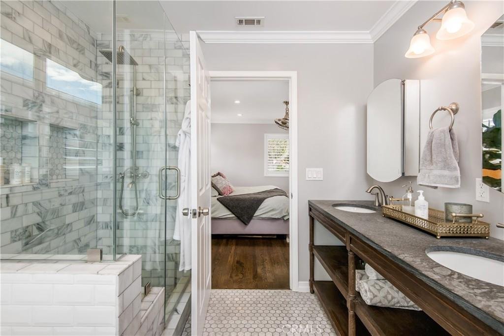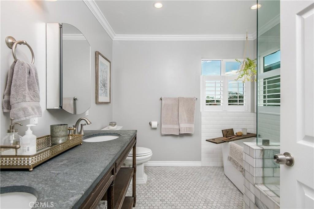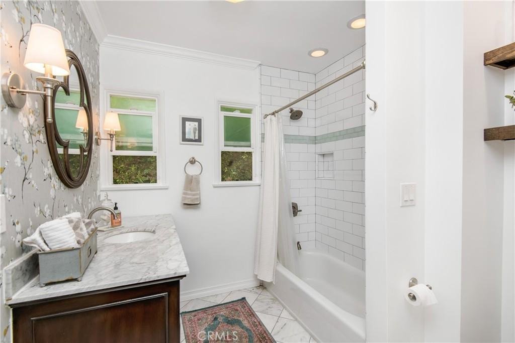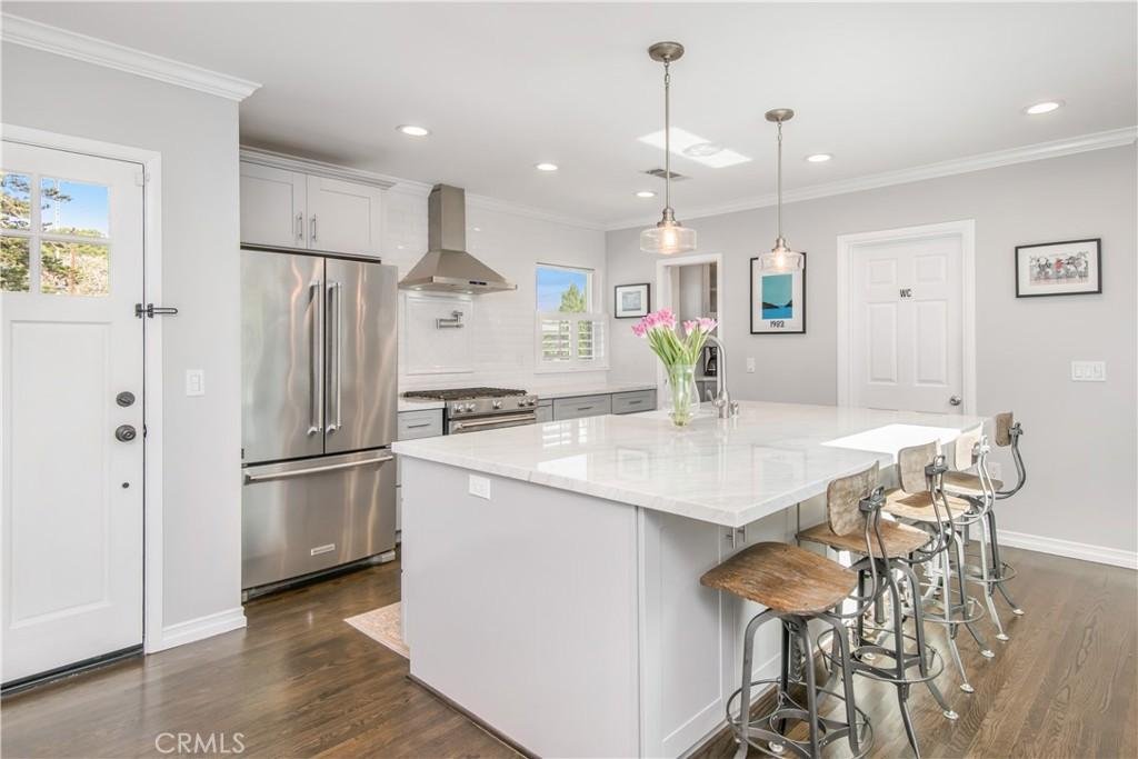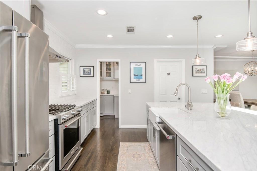 Perfectly situated on a beautiful tree lined street in the highly desirable neighborhood of Westchester sits this spacious open concept single family home filled with tons of natural light and high end upgrades throughout. An entertainer’s dream features a chef’s kitchen equipped with marble counter tops, an over sized 4 seater island with farmers sink, stainless steel appliances, gas burner stove with pot filler faucet, and walk in pantry with plenty of storage. Cozy up in the living room next to the fireplace and overlook the luscious backyard through the large picture window. Natural light pours through the large skylight over the main living area and dining room. Stepping into the den is additional living space with direct access to the backyard with a fire pit seating area, picnic table, avocado and fruit trees. Two of the three bedrooms are located on the first floor and share a fully renovated bathroom with shower tub. The primary suite is located on the second floor complete with built-in cabinets, a walk-in closet and master bathroom with soaking tub, double sink restoration hardware vanity, and huge walk in shower. Additional features of the home include a downstairs powder room with laundry, 2-car garage with additional storage, hardwood floors throughout, plantation shutters, and plenty of storage throughout.