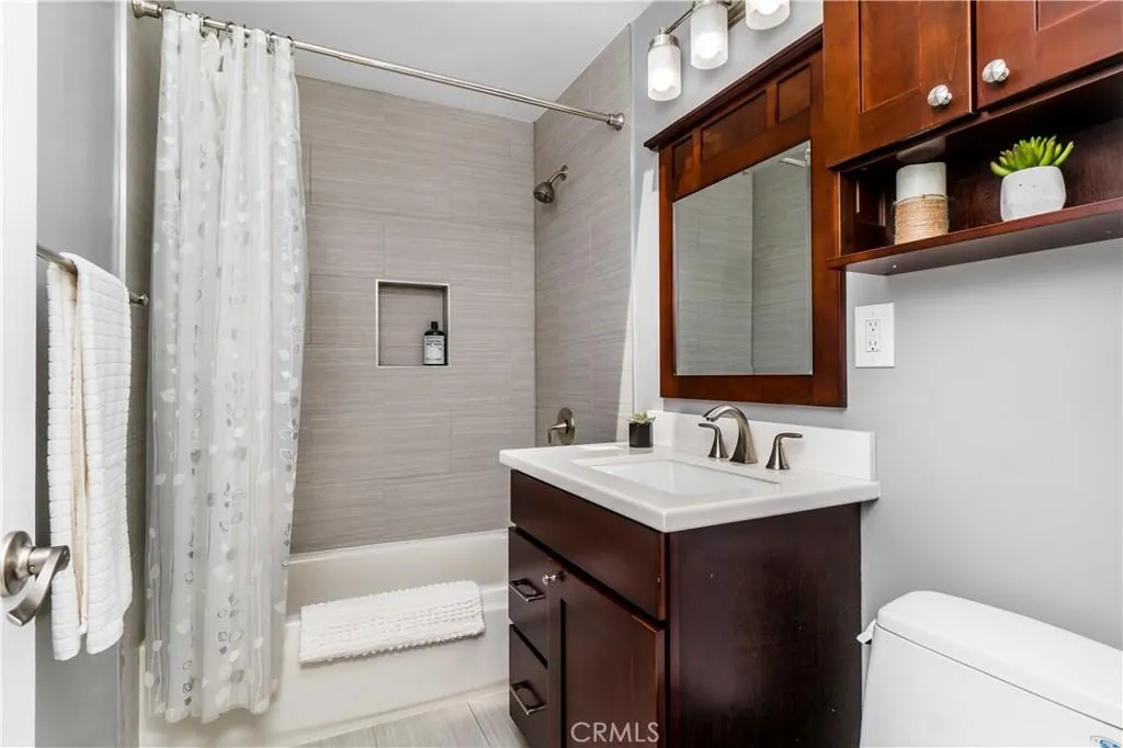 Welcome to this wonderful turnkey Westchester home featuring many upgrades throughout, lots of natural light and a fantastic floor plan. As you enter the front door you are greeted by an inviting living room with fireplace, wood floors, plantation shutters, and recessed lighting. As you continue through the dining area it opens up to the beautifully remodeled kitchen with quartz countertops, chef’s island, gas burning range and oven, soft closing cabinets and drawers, stainless steel appliances and a peek-a-boo window into the large family room with tall ceilings. As you step down into the spacious family room you have access to a dry bar with additional storage, remodeled powder room and master suite which includes a large walk-in closet, seating area, master bathroom with double sinks, walk-in shower, and jacuzzi tub with jets. The backyard has double access from the master suite and the family room. Enjoy the outdoor space under the shaded pergolas or gardening in the planter boxes equipped with a drip system and additional storage in the outdoor shed. Maintain your front and back yards with timed sprinkler systems, perfect for easy maintenance. Stepping back into the home are the two other bedrooms, a remodeled full bathroom with shower tub, and direct access to the garage all located towards the front of the home. Additional upgrades and features include: copper plumbing, central AC and heat, new interior doors throughout, multiple skylights, recessed lighting, crown molding, and a driveway large enough to fit up to four cars. Conveniently located to LAX, freeway access, shopping, restaurants, and more!